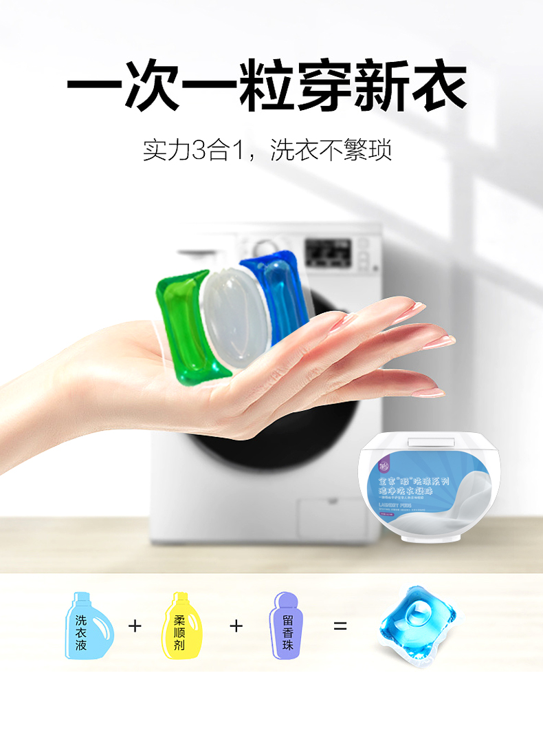 净允全家服洗涤系列洁净洗衣珠除菌除螨留香盒装三合一洗衣凝珠