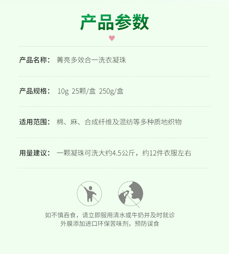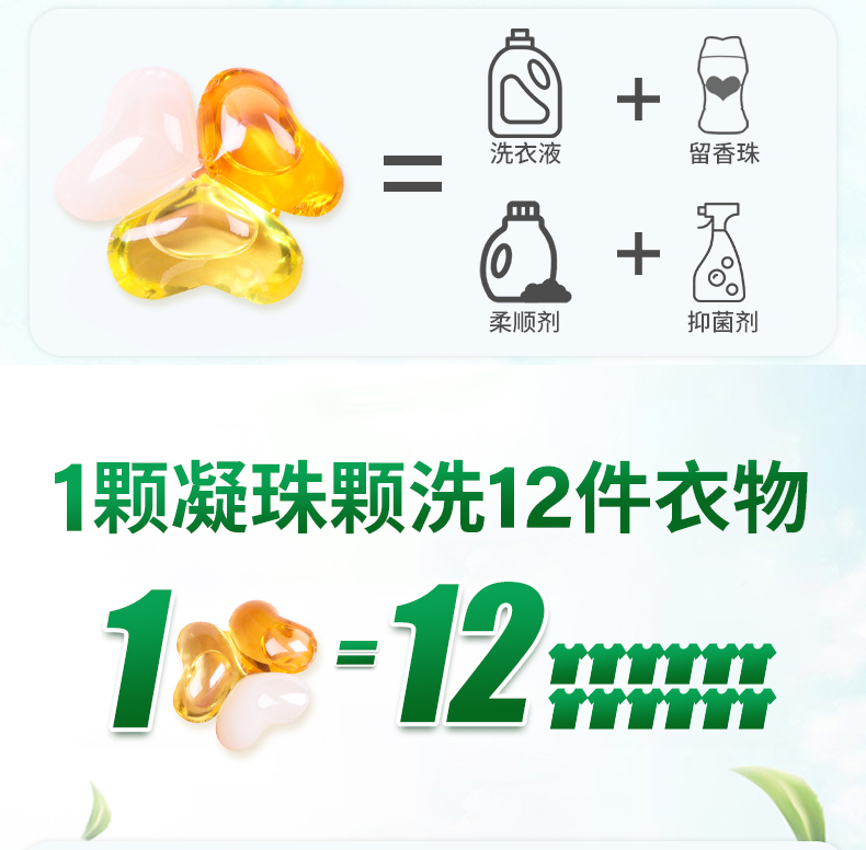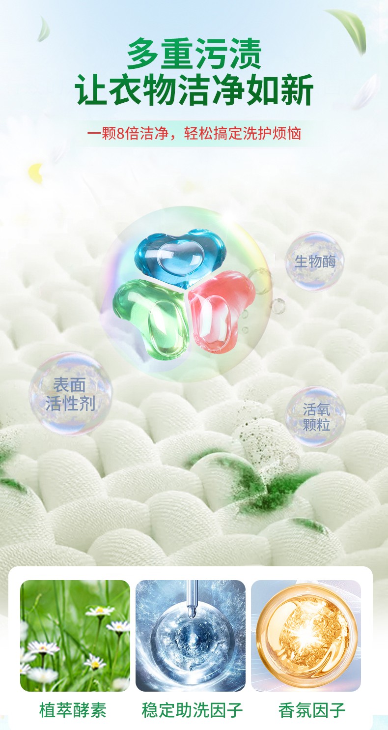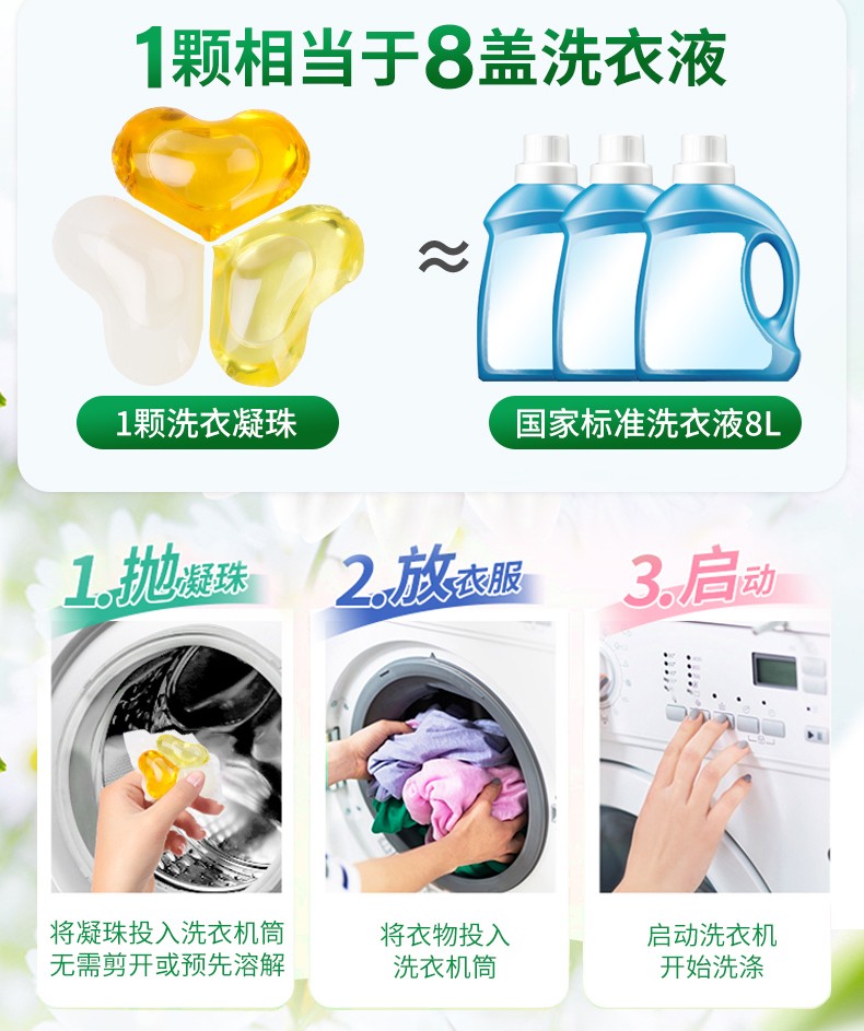 菁亮三合一洗衣凝珠香氛三叶草造型除菌除螨浓缩型纯液洗衣液凝珠