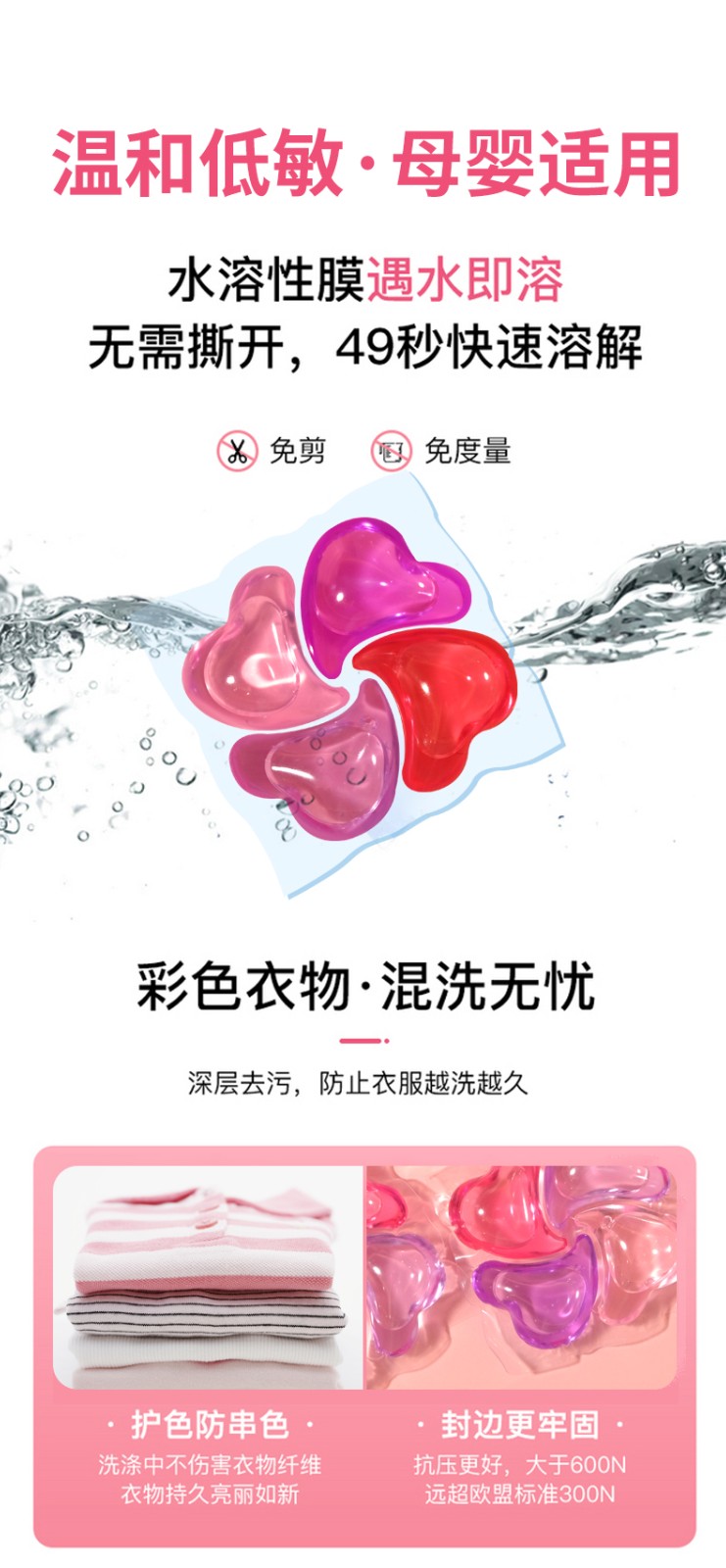 本次参展的凝珠产品分别有净允永恒之心自然系、女性系、运动系与全家服等,菁亮凝珠具有6大功效: